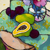 Angus Wilson Studio Wonderful Fun Designing This Paintings Composition And Color Playing With The Balance Of Warm And Cool Colors And The Busy Table Elements Papaya With Watermelon On Blue Tablecloth